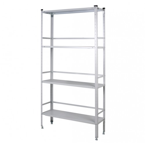 - Распределённая нагрузка на полку до 80 кг, суммарная нагрузка на стеллаж до 400 кг.