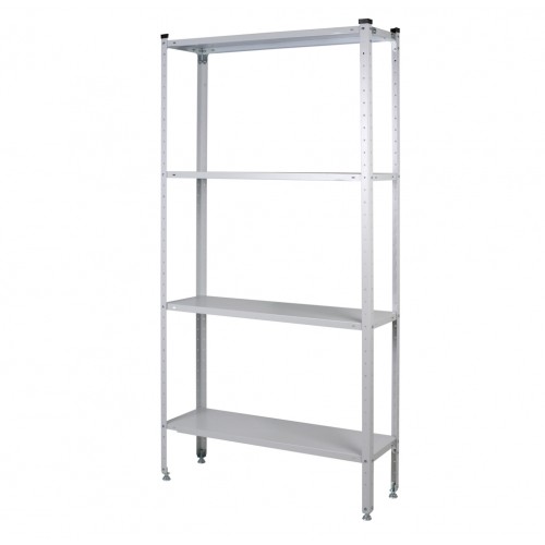 Представляет собой открытый металлический лабораторный стеллаж с полимерным покрытием серого цвета. Предусмотрена возможность выбрать глубину стеллажа из нескольких вариантов - 300, 400, 500 и 600 мм. Полки регулируются по высоте c шагом 50 мм.