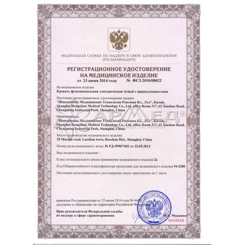 Кроватьпредназначена для использования как в лечебных учреждениях для ухода, диагностики и лечения пациентов под наблюдением врача, так и в домашних условиях - для профилактики, лечения и восстановления больных.