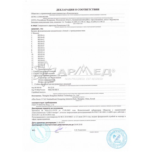 Кровать функциональная механическая Armed с принадлежностями RS106-B, 300100007, Медицинская мебель