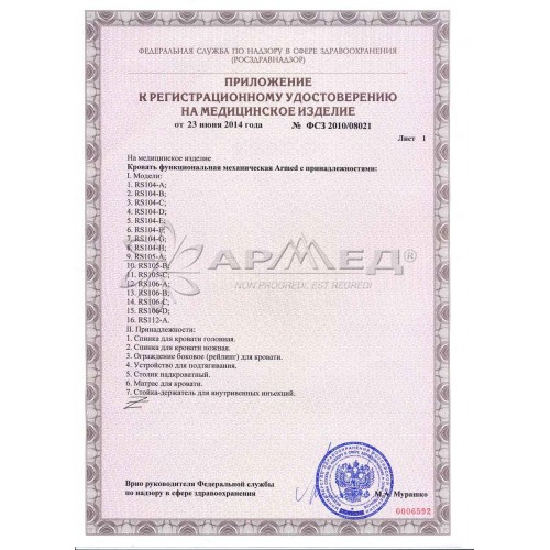 Кровать предназначена для использования как в лечебных учреждениях для ухода, диагностики и лечения пациентов под наблюдением врача, так и в домашних условиях - для профилактики, лечения и восстановления больных.