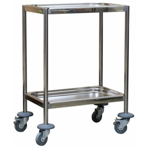 Стол комплектуется двумя поддонами из нержавеющей стали. Глубина поддона - 40 мм. Каркас стола - тонкостенный профиль, нержавеющая сталь.Покрытие стола устойчиво к регулярной обработке всеми видами медицинских дезинфицирующих и моющих растворов.